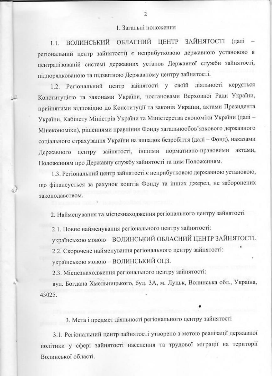Положення Волинського обласного центру зайнятості