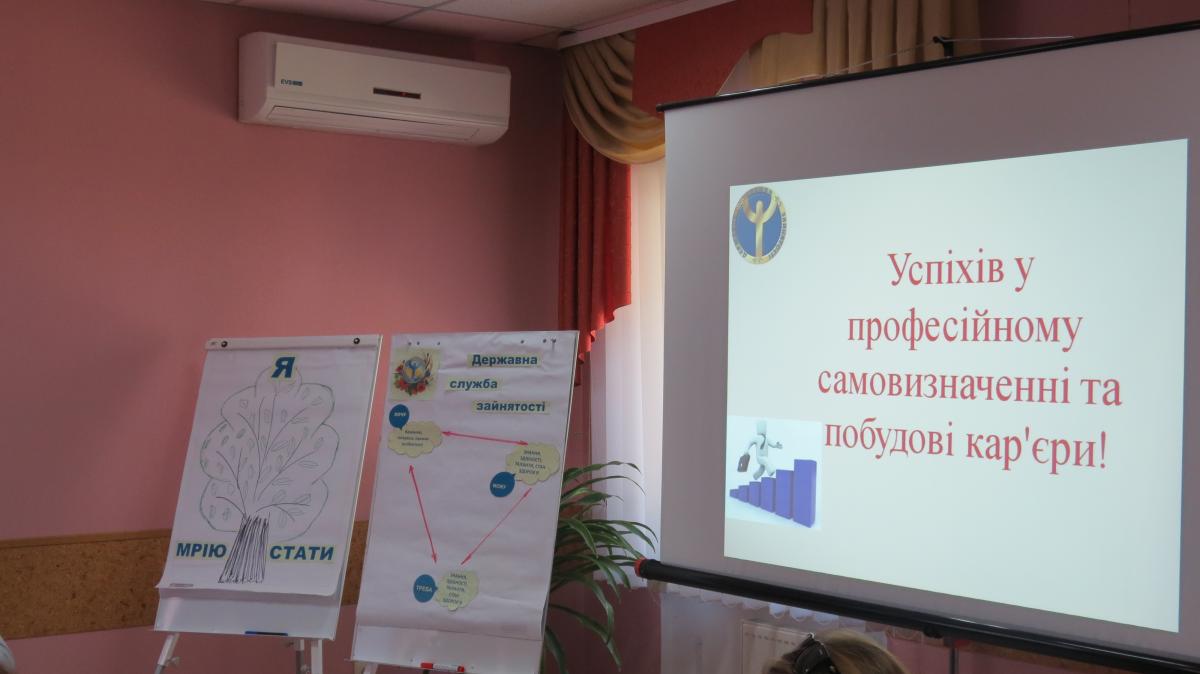 Ознайомили школярів із професіями, які зараз актуальні на ринку праці. Наталія Стащук розповіла присутнім за якими напрямками служба зайнятості здійснює професійне навчання, надала рекомендації щодо майбутнього вибору професії, а також презентувала формулу вибору професії «Хочу. Можу. Треба». Окрім того, закликала учнів пройти тестування для визначення професійних здібностей та допомоги у виборі майбутньої професії ще зі шкільної лави. Жінка наголосила, що замислитися про своє професійне майбутнє, обрати затребувану на ринку праці професію потрібно вже зараз, аби згодом, працюючи над собою, стати справжнім професіоналом справи, яку обрали.