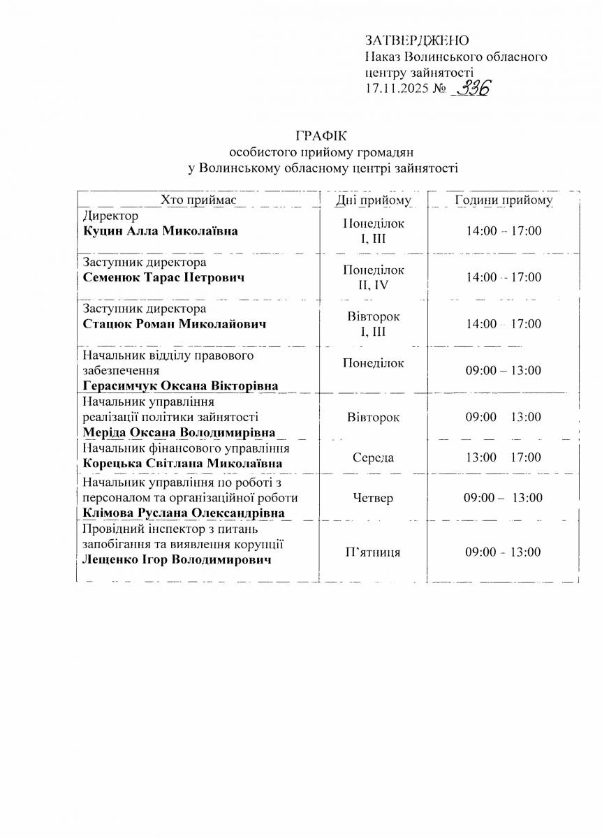 особистого прийому громадян у Волинському обласному центрі зайнятості